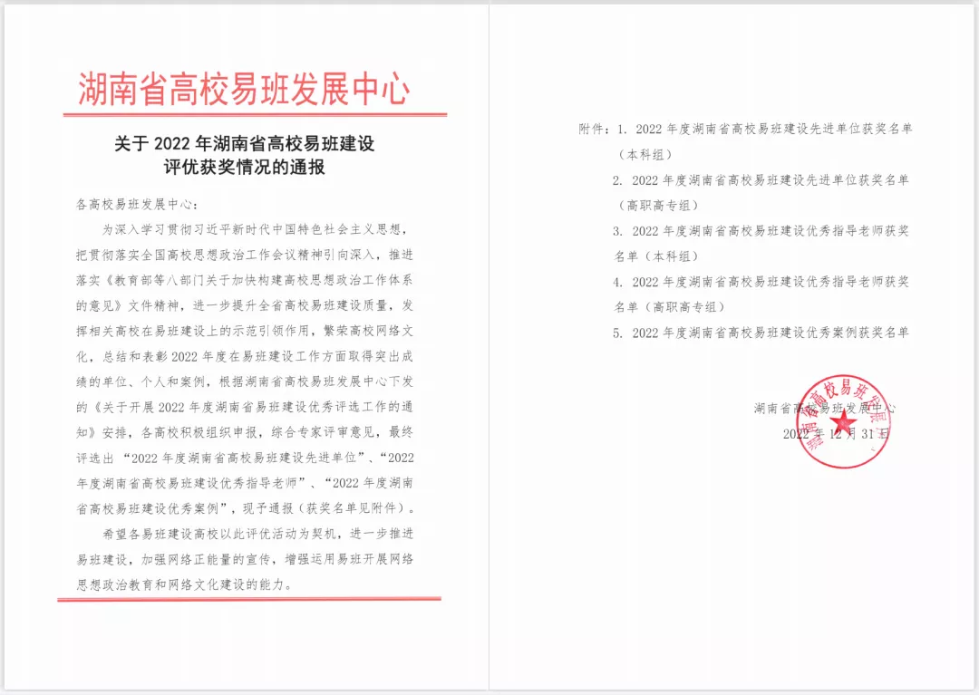 12月31日,湖南省高校发展中心发布《402永利集团2022年湖南省高校易班建设评优获奖情况的通报》,402永利集团荣获湖南省高校易班建设先进单位