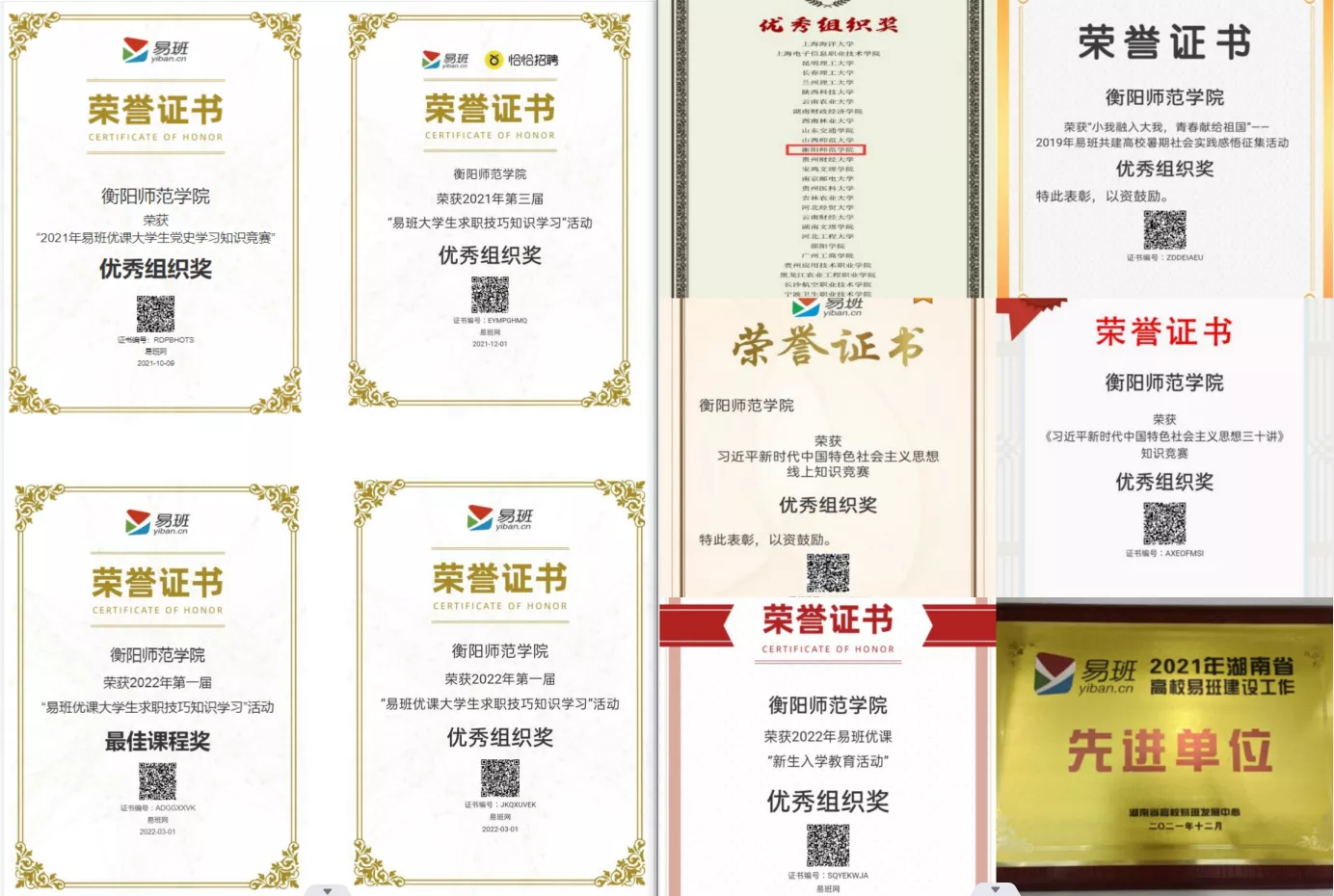 全国易班第一届“易班优课大学生求职技巧知识学习”活动中荣获“优秀组织奖”和“最佳课程奖”