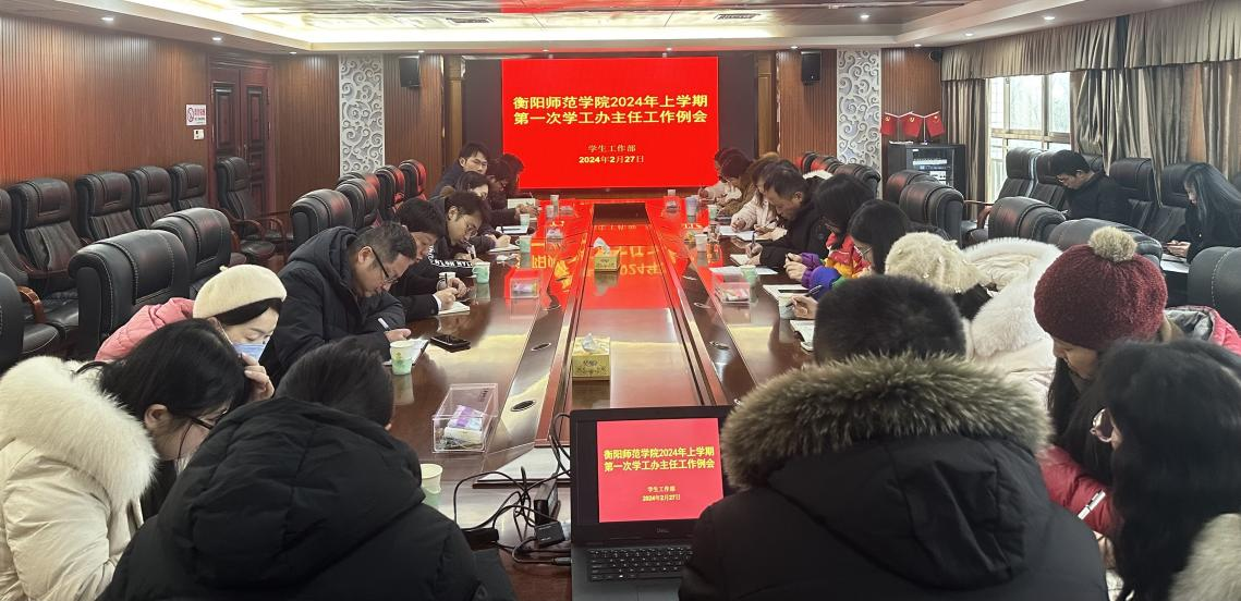 2月27日上午,402永利集团在行政楼三楼会议室召开了2024上学期第一次学工办主任工作例会,学生工作部副部长周华、黄懿,学生工作部相关科室负责人及各学院学工办主任参加了本次会议。