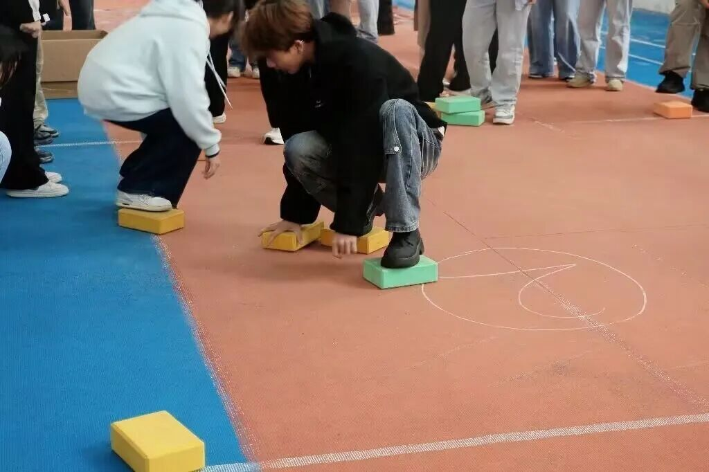 选手们踏“石”飞渡,交替前行。接力击掌的瞬间,传递了冲刺终点的坚定决心与并肩作战的深厚信任。