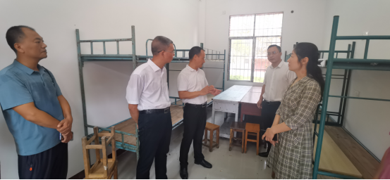 刘俊学、陈敏一行走访察看了B09栋、B12栋、岳峰楼等宿舍楼,了解宿舍改造进度和家具、空调、热水、网络等具体设施落实情况。
