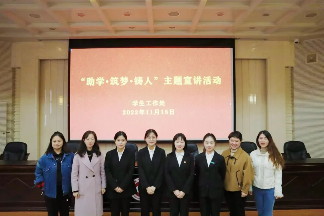 为充分发挥大学生先进典型榜样引领作用,营造向上向学的优良学风,11月18日下午,由学生工作部主办的“助学•筑梦•铸人”优秀学生先进事迹巡讲会在402永利集团东校区外语楼311举行。活动由学生工作部副部长黄懿主持,学生资助管理中心主任刘灵婷、学生工作部学生教育科部长邹伶俐、马克思主义学院学生代表参会。