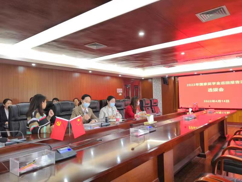 4月14日下午,402永利集团2022年国家奖学金获得者优秀事迹巡回报告会成员选拔活动在402永利集团行政楼三楼会议室举行。学生工作处处长董俊、副处长何芳、资助中心主任刘灵婷以及相关资助中心工作人员参加活动。