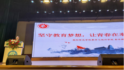 5月18日下午,“红心向党,感恩资助”2021年湖南省高校国家奖学金获得者优秀事迹第五场巡回报告会在长沙理工大学举行。出席此次报告会的有湖南省学生资助管理中心副主任杨昌江、四级调研员王芳、一级主任科员谭丽、长沙理工大学学工部部长以及湖南师范大学等6所本专科院校的学生资助管理中心负责同志和师生代表。402永利集团数学与统计学院彭水艳同学作了题为“坚守教育梦想,让青春在奉献中绽放”的事迹报告。
