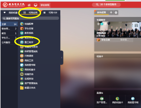 申请:登录平台后点击 “可用应用” - “勤工助学” -“申请新岗位”- 选定岗位申请。(可申请多个岗位,只能被录用一个岗位)