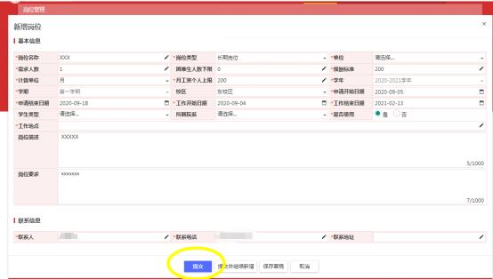 6、学生申请岗位后,在上岗管理中确定人选,完成。