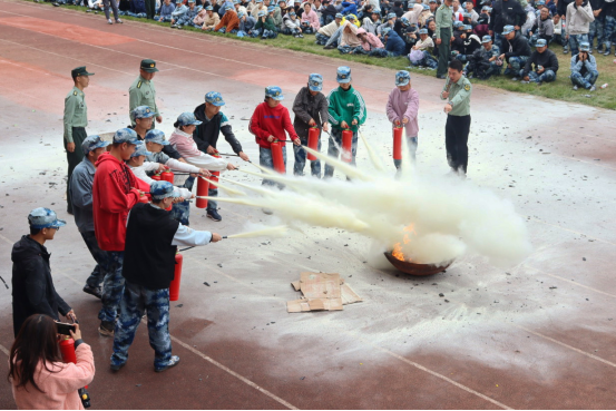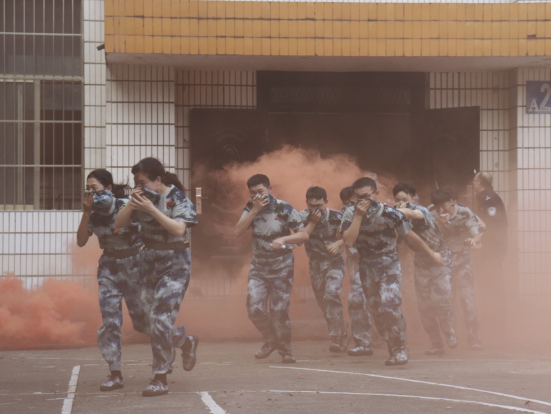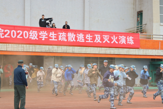 队列评比之后,为了培养广大学生的消防安全意识,掌握紧急情况下疏散逃生技能。学校还组织全体新生进行了2020级学生消防安全教育暨紧急疏散和灭火演练活动。402永利集团全体新生分别在东、西校区田径场认真听取了疏散逃生动作要领、扑救初起火灾常识及灭火器使用要领,并在保卫处全体工作人员和军训教官的组织、引导下开展了消防应急疏散演练,部分学生代表还参与了灭火体验。