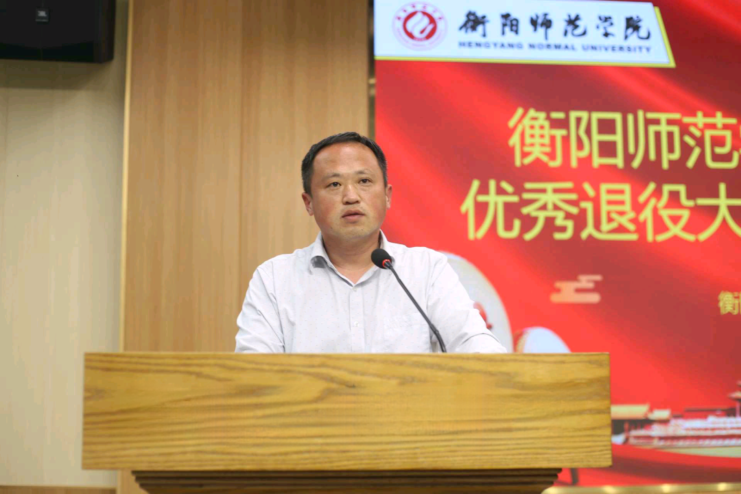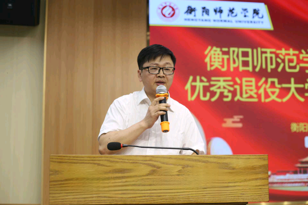 周华向退役复学大学生致以崇高敬意。他指出,同学们的亲身经历充分表明,军旅训练与校园成长紧密相连、相互成就,共同谱写了青春奋斗的精彩篇章。接着,周华副部长向退役大学生们提出三点殷切期望:一是永葆军人底色,把部队里养成的纪律意识融入学习,助力学业进步;二是重视团队协作,凝聚集体力量,攻克学习和生活中的重重困难;三是勇担时代使命,以军人担当引领积极校园风尚。他还暖心承诺,学校会为大家提供全方位支持,鼓励大家保持军人作风,用奋斗精神感染身边同学,期待大家在未来的学习生活中不断发光发热,书写属于自己的精彩篇章 。