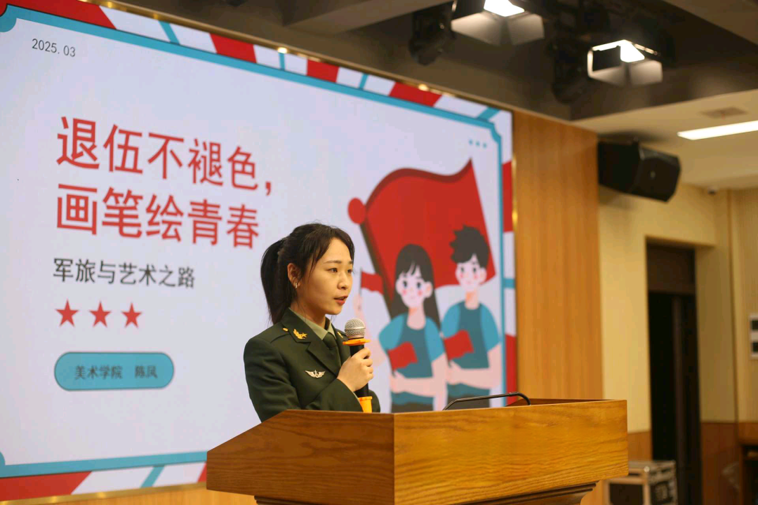 陈凤曾是美术学院学生,受父亲熏陶,怀揣军旅梦,2019 年她响应国家号召参军入伍。在军营,陈凤发挥艺术特长,带领连队完成黑板报;因表现突出,获评2020 年连队年度先进个人。2021 年,陈凤退伍重返校园,秉持严谨自律的作风。学业上,成绩优异,获学校和国家资助;生活里,在21 年校田径运动会上奋力拼搏,为学院争光,在实习时表现同样出色,收获学校好评。展望未来,陈凤表示会永葆军人本色,努力学习,为实现中华民族伟大复兴贡献力量 。