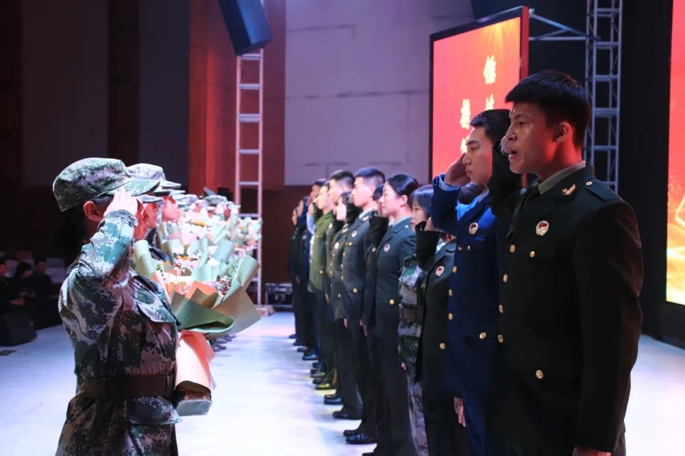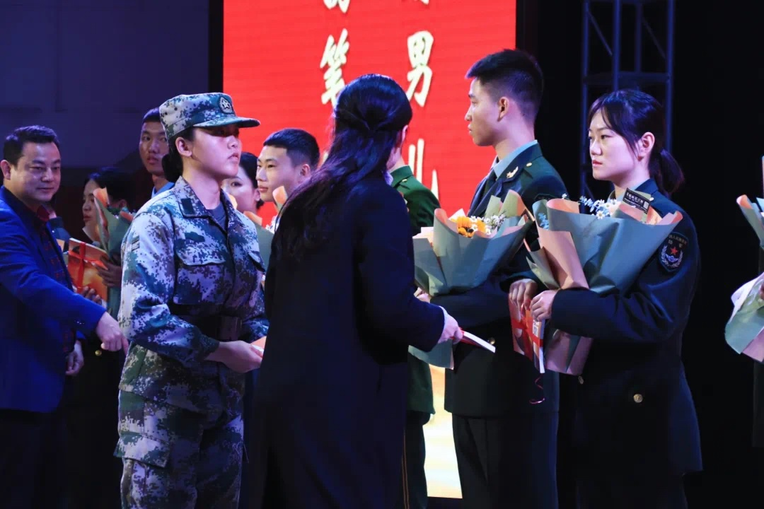 402永利集团于12月15日下午15:00在东校区音乐厅举行了2022年大学生春季征兵工作启动仪式暨退役复学学生事迹宣讲会。402永利集团党委委员、副校长魏晓林、雁峰区人武部政委邹志华、雁峰区人武部军事科科长张家军、政工科科长邹辉、402永利集团武装部部长董俊、副部长周华以及各教学院党总支副书记、征兵专干、退役复学学生代表、东校区各教学院学生代表和校武装部全体工作人员参加了本次活动。一身戎装 一生荣光,即使没有繁华,心中始终充满阳光;纵然直面风雨,也要不畏艰险。在仪式开始前两段震撼人心的征兵宣传片,让在场观众热血沸腾。