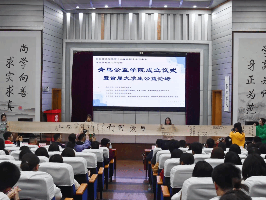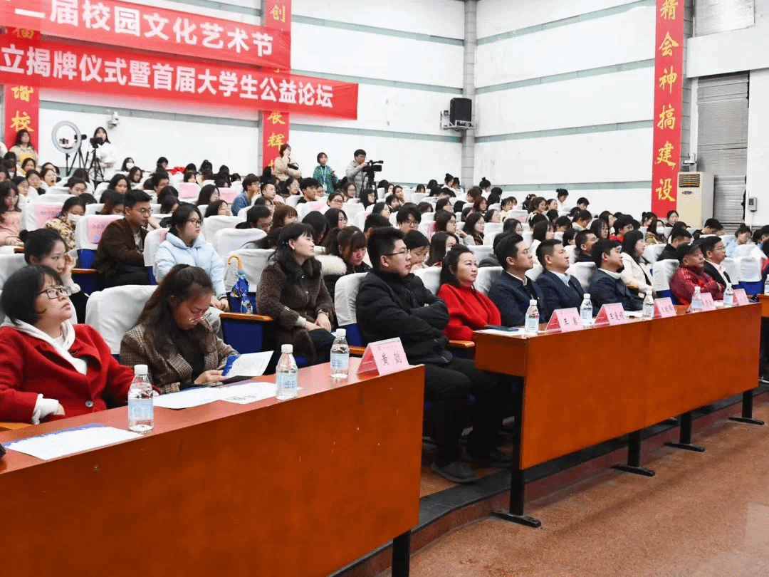 为推动公益教育的创新发展,培养更多优秀的公益人才,提高广大师生对于公益精神的理解。文学院于3月29日晚上在402永利集团西校区模拟法庭承办了津梁讲坛第二十七期——“青鸟公益学院成立仪式暨首届大学生公益论坛”,以及举办402永利集团第十二届校园文化艺术节—青鸟志愿者协会成立20周年庆晚会。出席本次活动的领导嘉宾有共青团衡阳市委员会书记王致伟、副书记王骞、衡阳市文化馆馆长王曼娟、衡阳市志愿者服务中心主任江丰、衡阳市备战青年志愿者协会会长唐备战、湖南省一起公益慈善事业发展中心执行主任童罗、祁东县启航学校党支部书记兼校长陈亮伟,共青团402永利集团委员会书记朱贤友、副书记魏菲菲、402永利集团学生工作部副部长黄懿、文学院党总支书记张云峰、院长任美衡、党总支副书记何颖、副院长文玲、组织员陈东教授等领导老师,各学院分团委书记带领学生代表参加了本次活动。