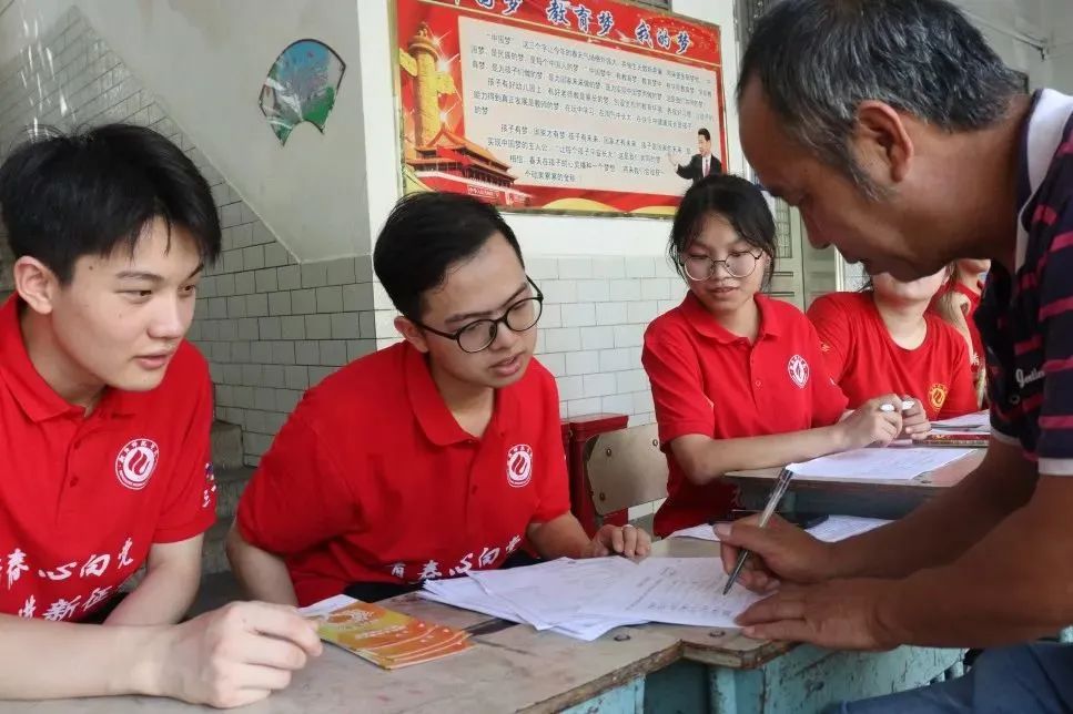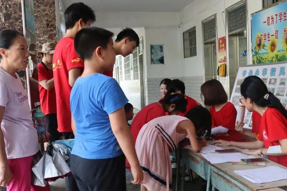指导老师唐升、钟彪以及36名志愿者在近尾洲联合学校中心小学陈主任的带领下,我们的“三下乡”工作正式开启了。
