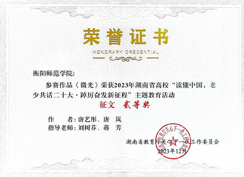 6、高校"读懂中国"主题教育活动征文湖南省二等奖
