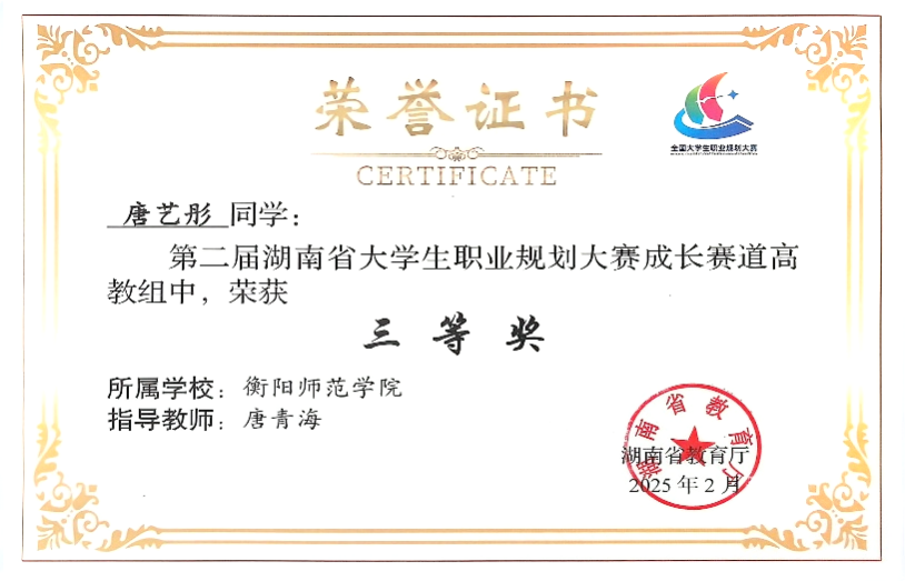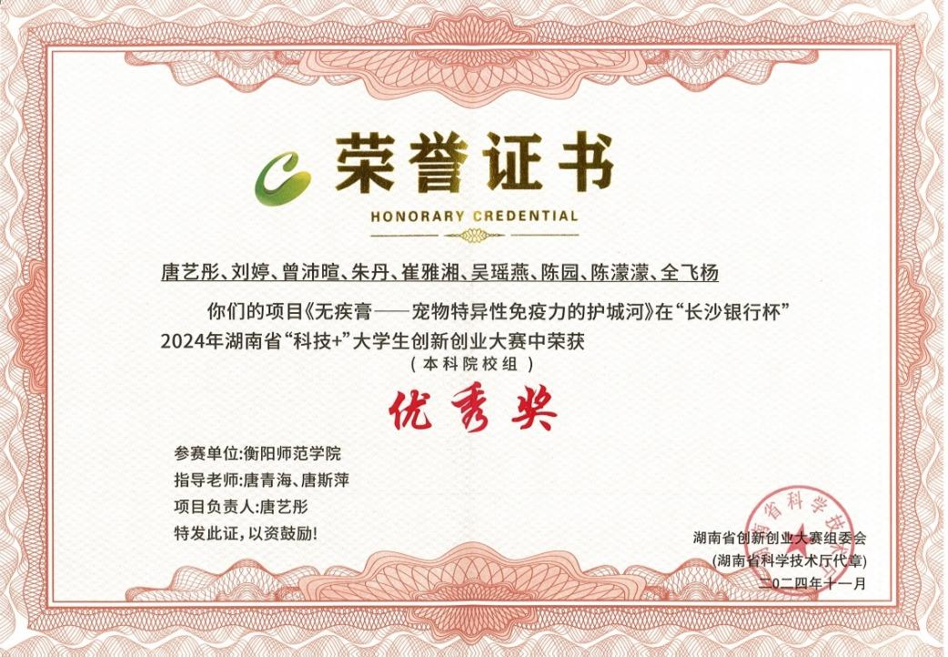 3、“长沙银行杯”湖南省“科技+”大学生创新创业大赛优秀奖
