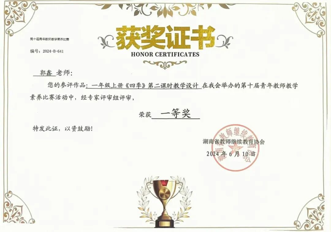 2.2024年荣获第十届青年教师教学素养比赛活动一等奖