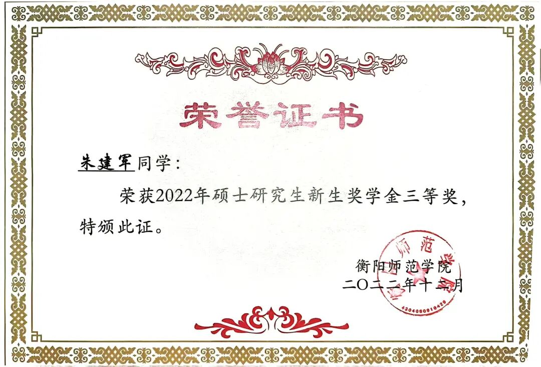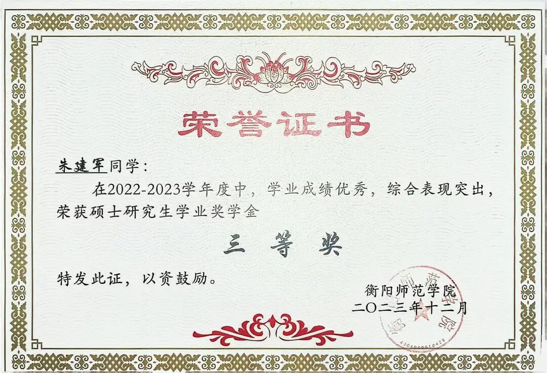 在2022-2023学年度中,荣获硕士研究生学业奖学金三等奖