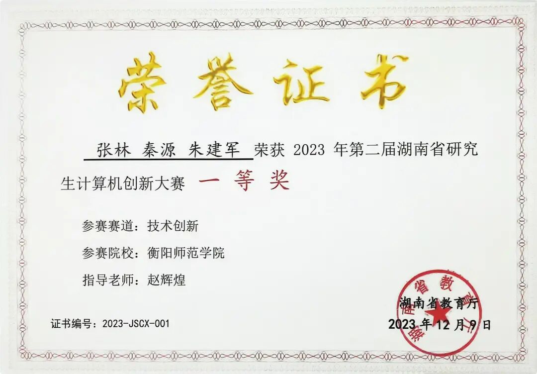 2023.12在第二届湖南省研究生计算机创新大赛中荣获一等奖