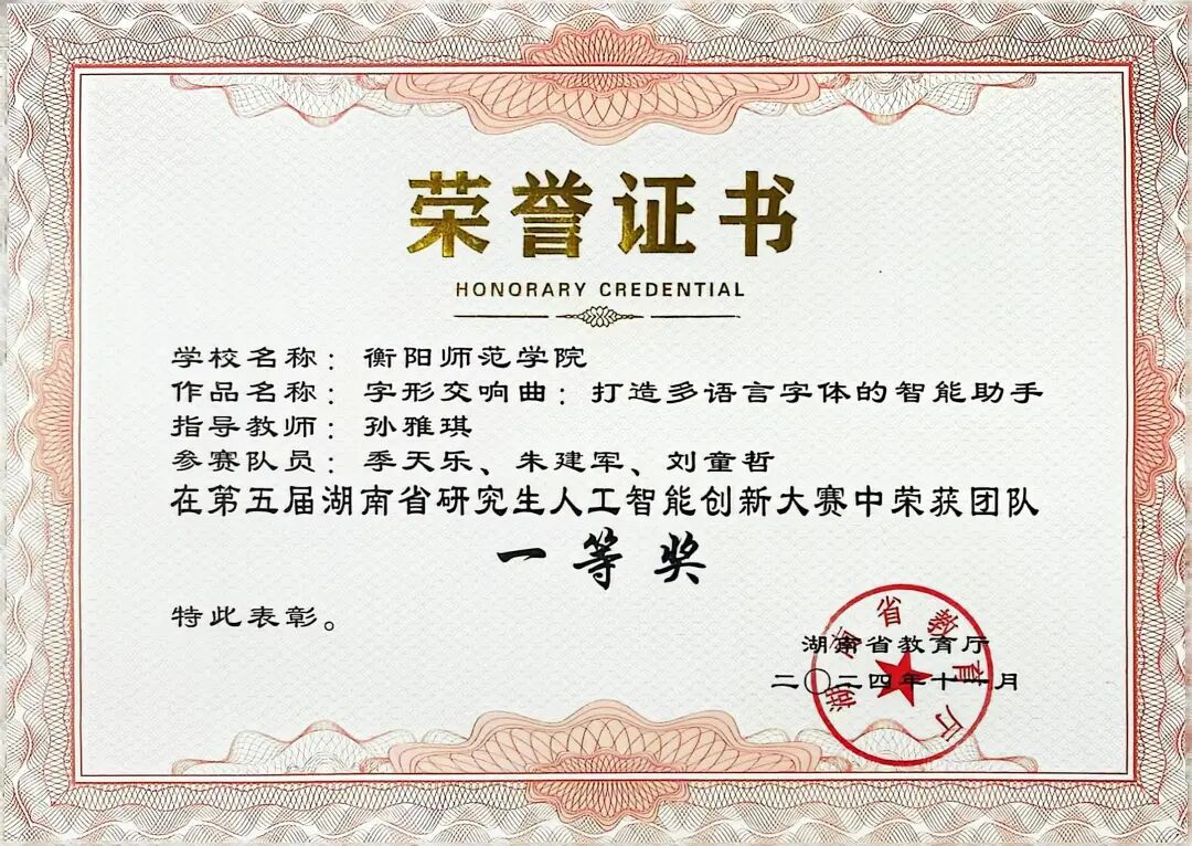 2024.11在第五届湖南省研究生人工智能创新大赛中荣获一等奖