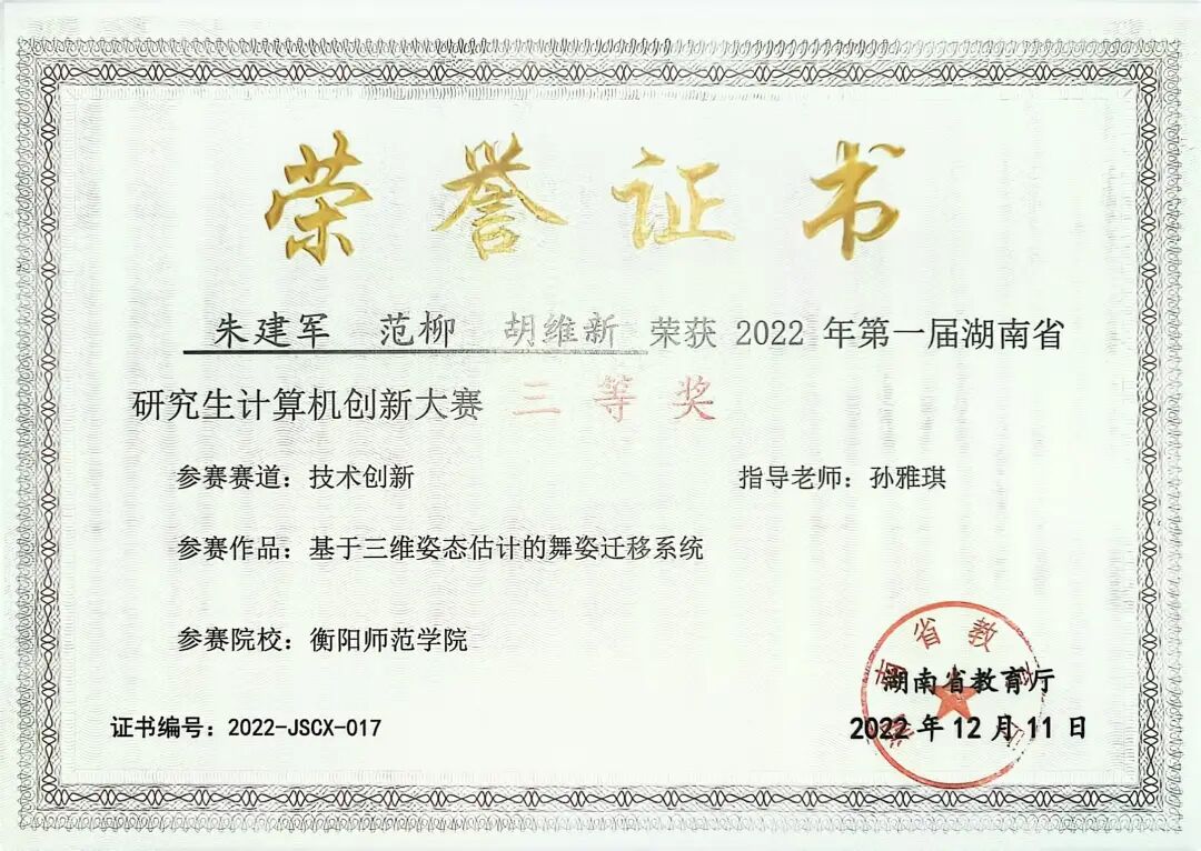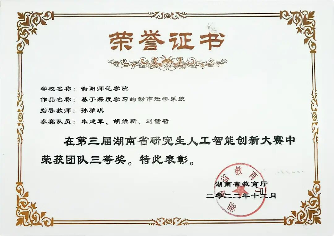 2022.12在第三届湖南省研究生人工智能创新大赛中荣获三等奖