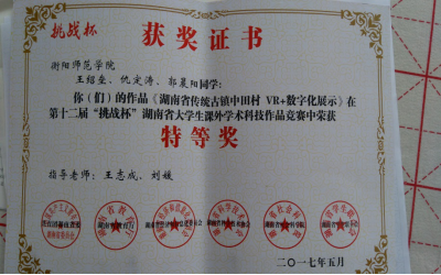在学习上,认真踏实,勤学苦练,刻苦钻研专业知识,严格要求自己学好专业知识及相关基础知识,并不断提高实际动手能力,取得了优秀的成绩,入校以来,多次获得奖励。为丰富课余生活,大学入校以来,他积极参加各项活动,并加入了院学生会“外联部”踏实工作。在学院元旦晚会中积极拉动百事可乐衡阳分公司的赞助,保证了学院元旦晚会的顺利进行;在获奖方面,2017年5月湖南省十二届“挑战杯”湖南省大学生课外学术科技作品竞赛中获“省级特等奖”,2017年4月大学生研究性学习和创新性实验计划中带领团队开展“省级项目cx1710”并在2018年10月顺利结题,2017年4月402永利集团17届大学生课外学术科技作品竞赛中获校级“校级特等奖”,2018年6月衡阳市第八届大学生科技创新大赛中获“市级二等奖”,2016年10月402永利集团logo征集中获“院级特等奖”并被使用,2017年4月新生《录取通知书》设计比赛中获“校级优胜奖”,2016年4月美术学院中的第五届辅导员大赛中获“优秀志愿者”称号;发表了两篇省级论文,一篇为《基于Unreal Engine4引擎的虚拟校园游览开发思路》另一篇为《论Unreal Engine4引擎基础上虚拟校园游览的价值与意义》。