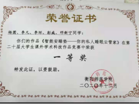 6. 2020年11月,获402永利集团第二十届大学生课外学术科技作品竞赛一等奖;