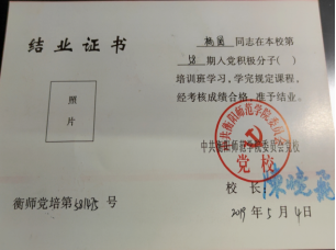 杨圆同学有坚定正确的政治方向,在思想和行动上严格要求自己,不断加强自身素养,积极主动向党组织靠拢。大一一进入学校,她就主动向党组织递交了入党申请书,2019年5月参加了党校第58期积极分子培训,最终以优异的成绩顺利通过了党课的考核。在党组织的培养考察下,她不断端正自己的入党动机,加强自己的党性修养,始终坚持拥护党的领导,掌握时事动态。同时,她不断坚持学习党的理论知识,进一步提高自我的思想觉悟,切实遵守国家的法律以及学校、学院的各项402cc永利官网。她爱好关心国家大事,注重自身的思想建设,不断提高自我的思想政治素质,时刻以党员的标准严格要求自己,不断坚定信仰中国共产党的决心。