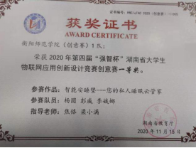 7. 2020年11月,2020年(第四届)“强智杯”湖南省大学生物联网应用创新设计竞赛(创意赛)一等奖等等
