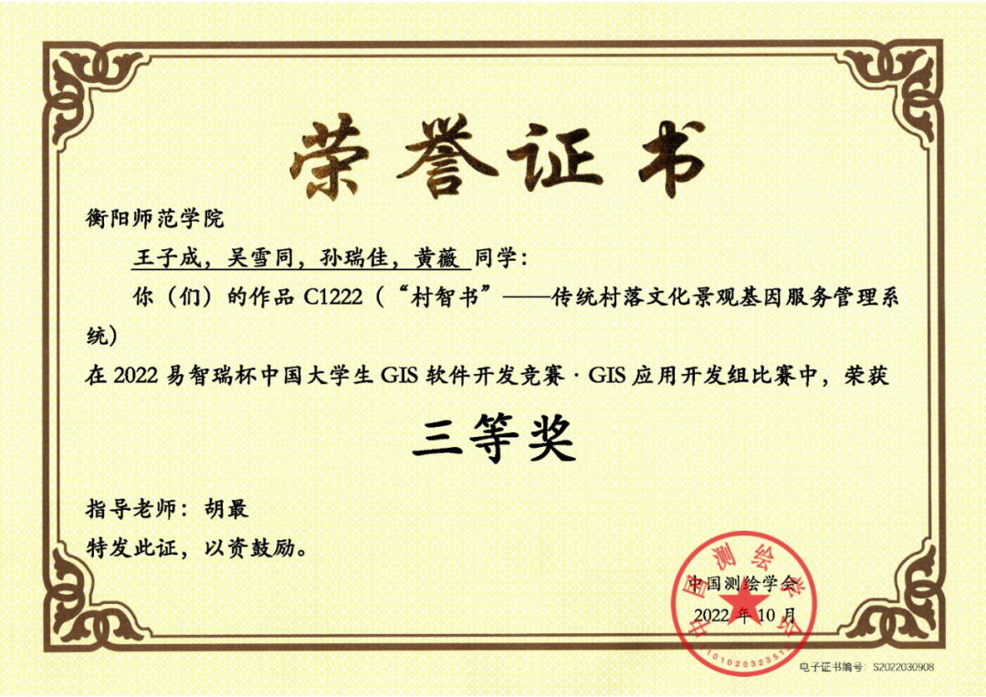2.2022全国“易智瑞”杯中国大学生GIS开发竞赛应用开发组三等奖