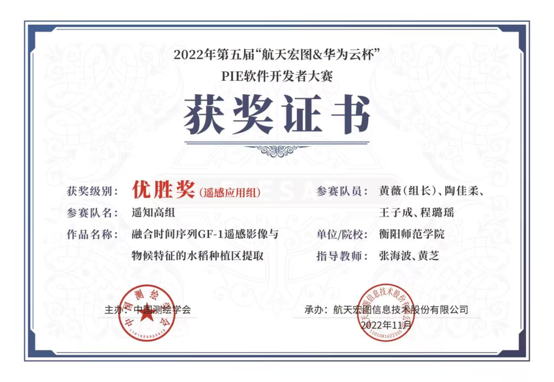 3.2022年第五届全国“航天宏图&华为云杯”PIE开发者大赛遥感应用组优胜奖