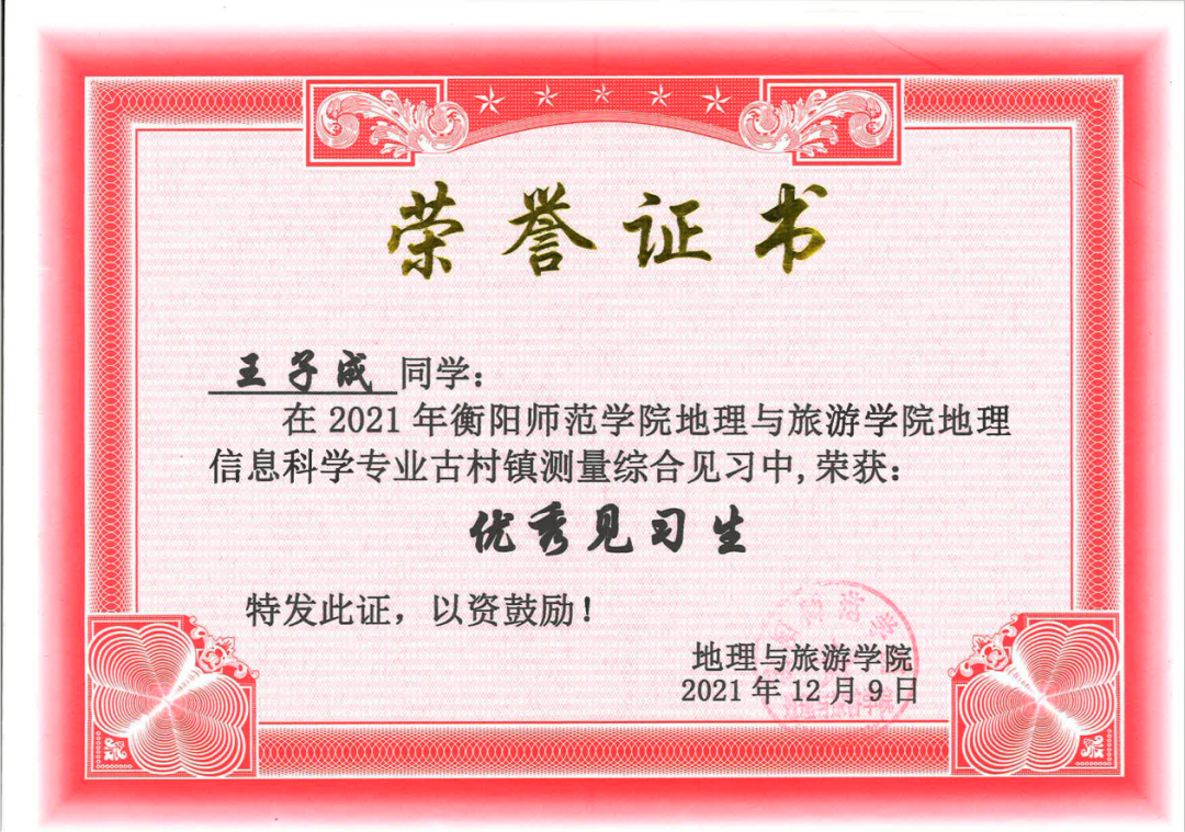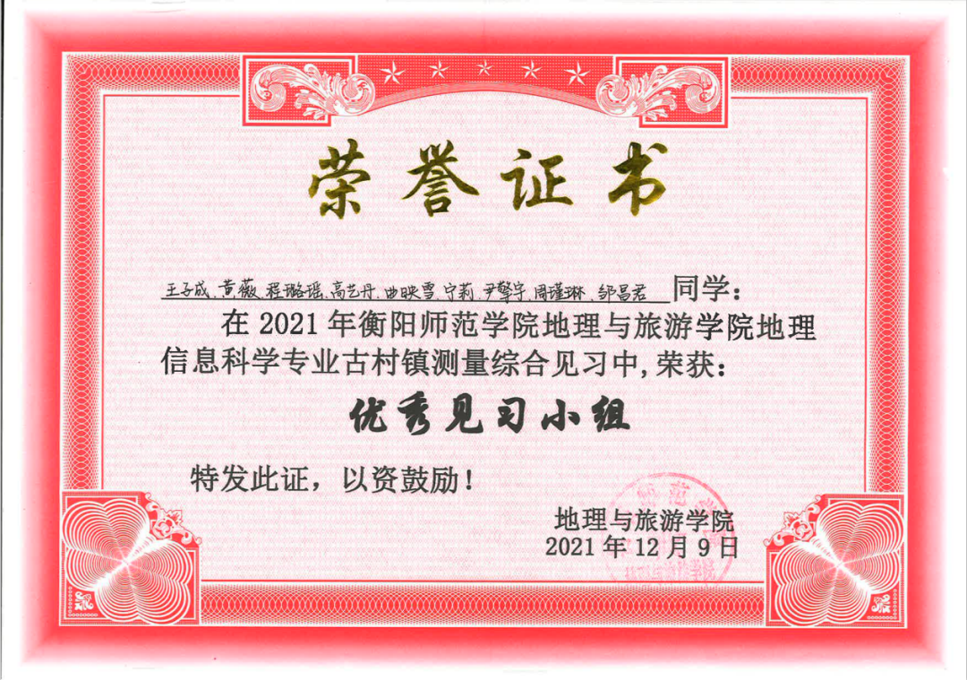 1.2021年地理与旅游学院地理信息科学专业古村镇测量综合见习“优秀实习生”称号