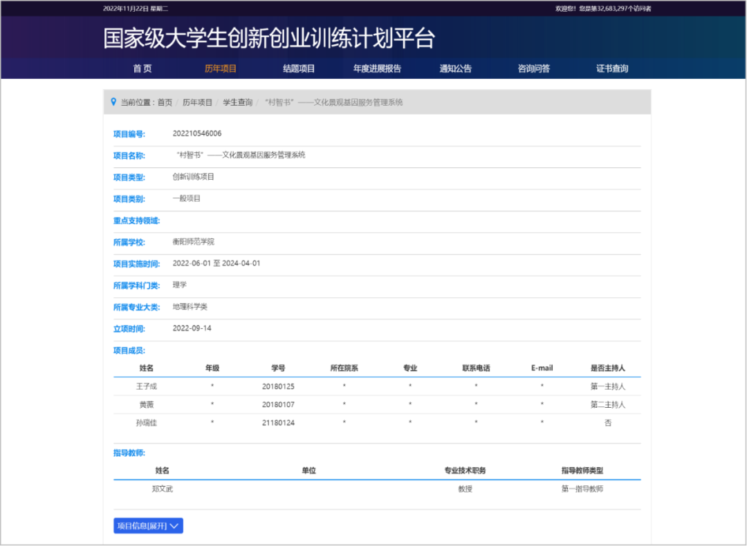 他利用在校所学知识与前期科研成果,在互联网浪潮中看到了产业风口。浪潮勇进,积极整理团队前期成果,团队以“赋活村落,守望乡愁”为主题参加了2022年“互联网+”大学生创新创业大赛青年红色之旅赛道,并获得湖南省二等奖。以此奖励为契机,他牵头团队讨论未来发展方向,并定下了以创业为基石的产学结合的创业道路。同年10月,团队以衡阳市珠晖区智书数字文旅技术服务中心的名称入驻创业园,并在11月获批营业执照,商户主要营业项目为聚落旅游项目开发与APP维护。目前他的团队已拥有成熟的技术路线和营销模式,在以公益项目为背景的前提下稳步前进。