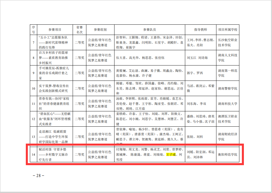 1.湖南省“互联网+”大学生创新创业大赛青年红色之旅赛道二等奖