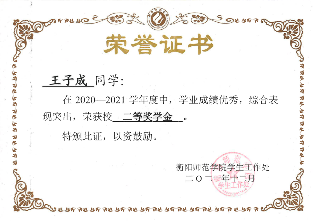 他学习成绩优异,思想素质突出。在校两年期间,他连续两年获得期末综合测评成绩第一名。同时,王子成同学不拘泥于课内所学。他积极参加校内外各个学科竞赛与科研项目,他认为:学科竞赛是对学习成果的考验,是对课外前沿知识的扩充,是不同学校、不同地区学生思维碰撞与交流的平台。他在竞赛准备过程中学到了领域前沿知识、获得了丰硕的竞赛成果。