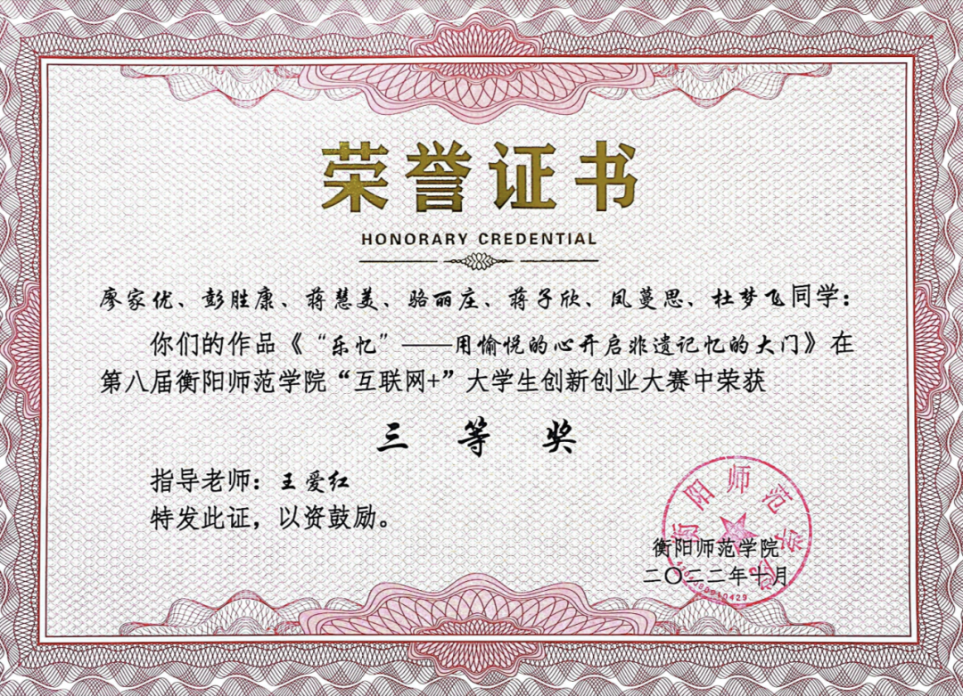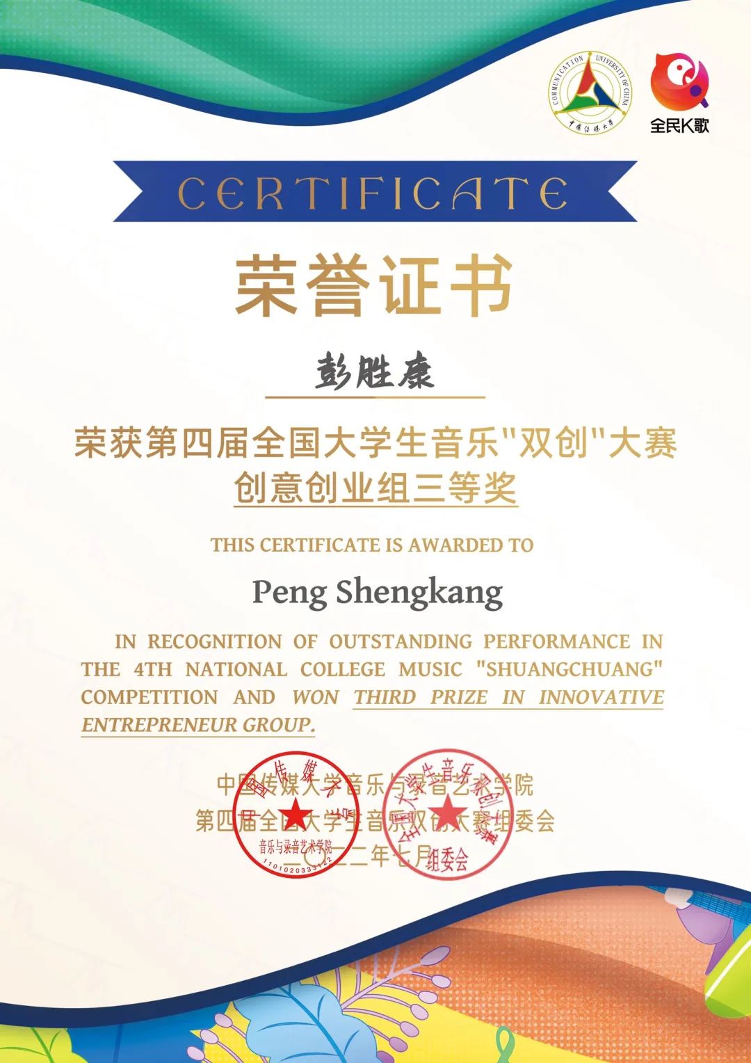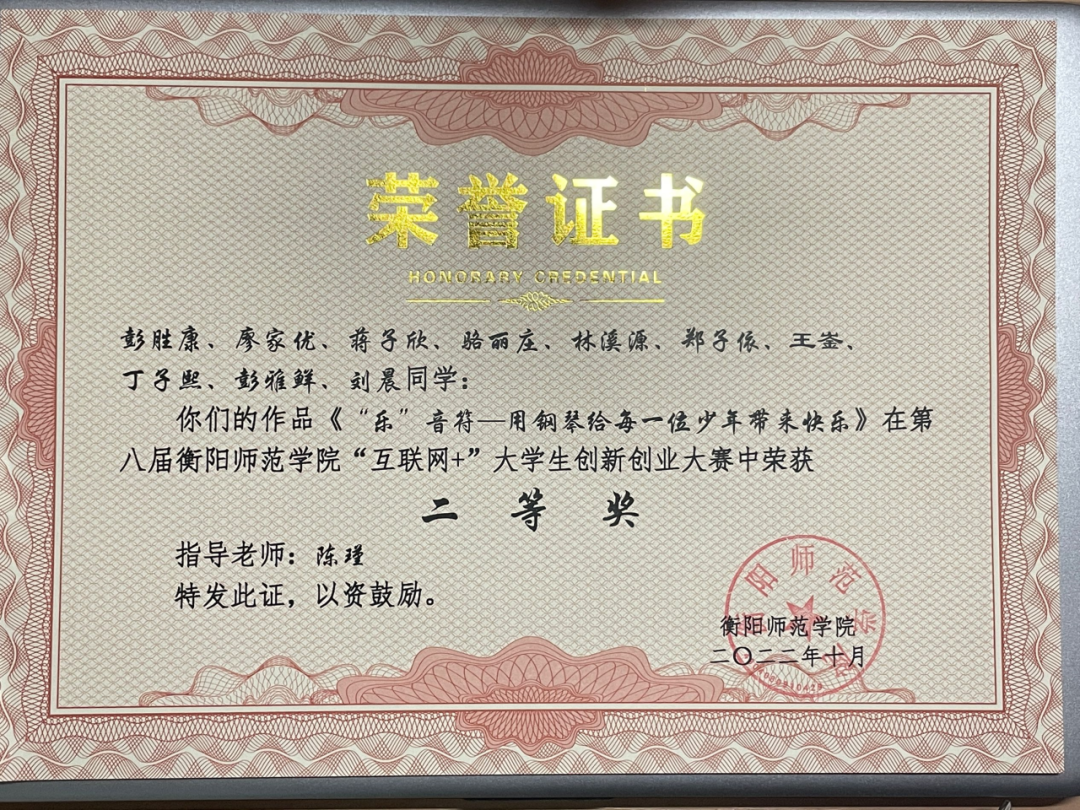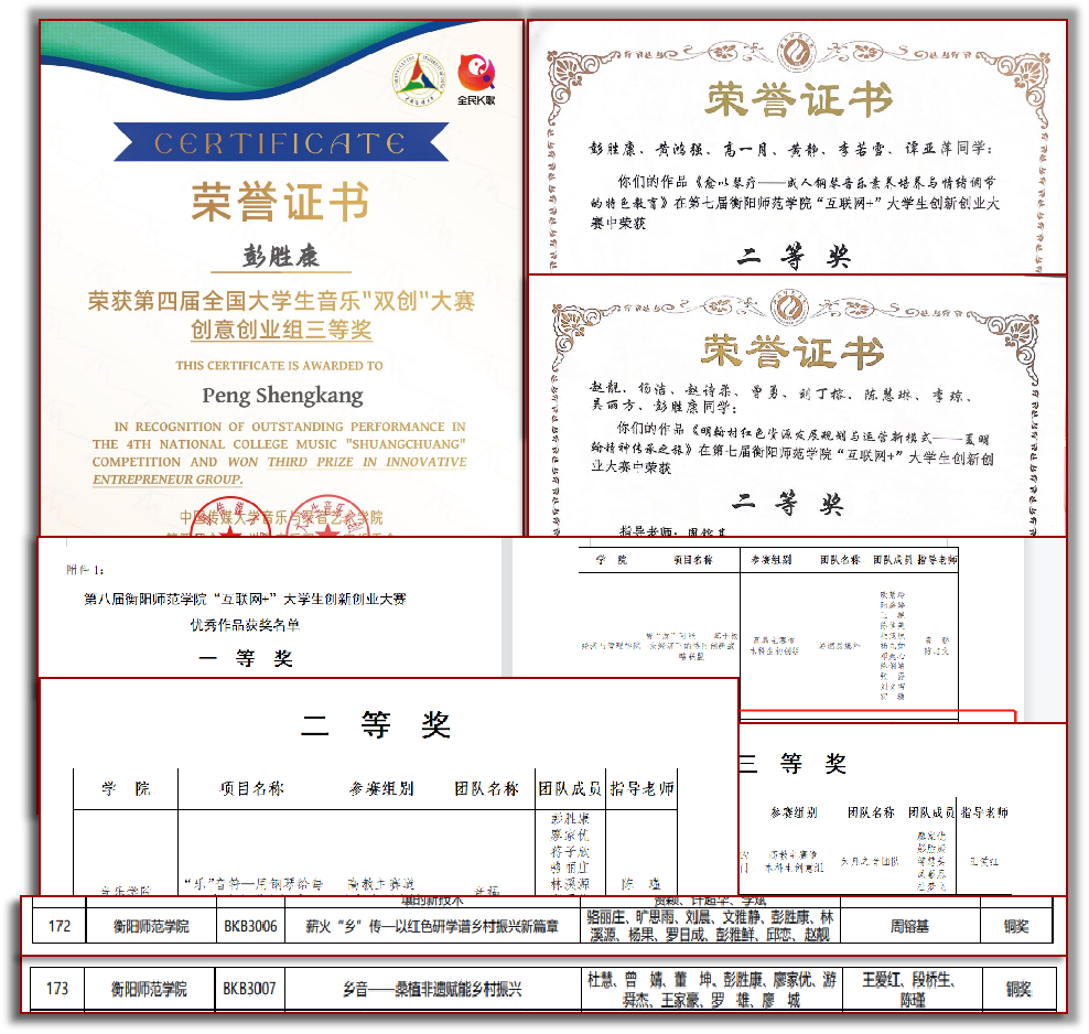 1.第四届全国大学生音乐双创大赛“三等奖”