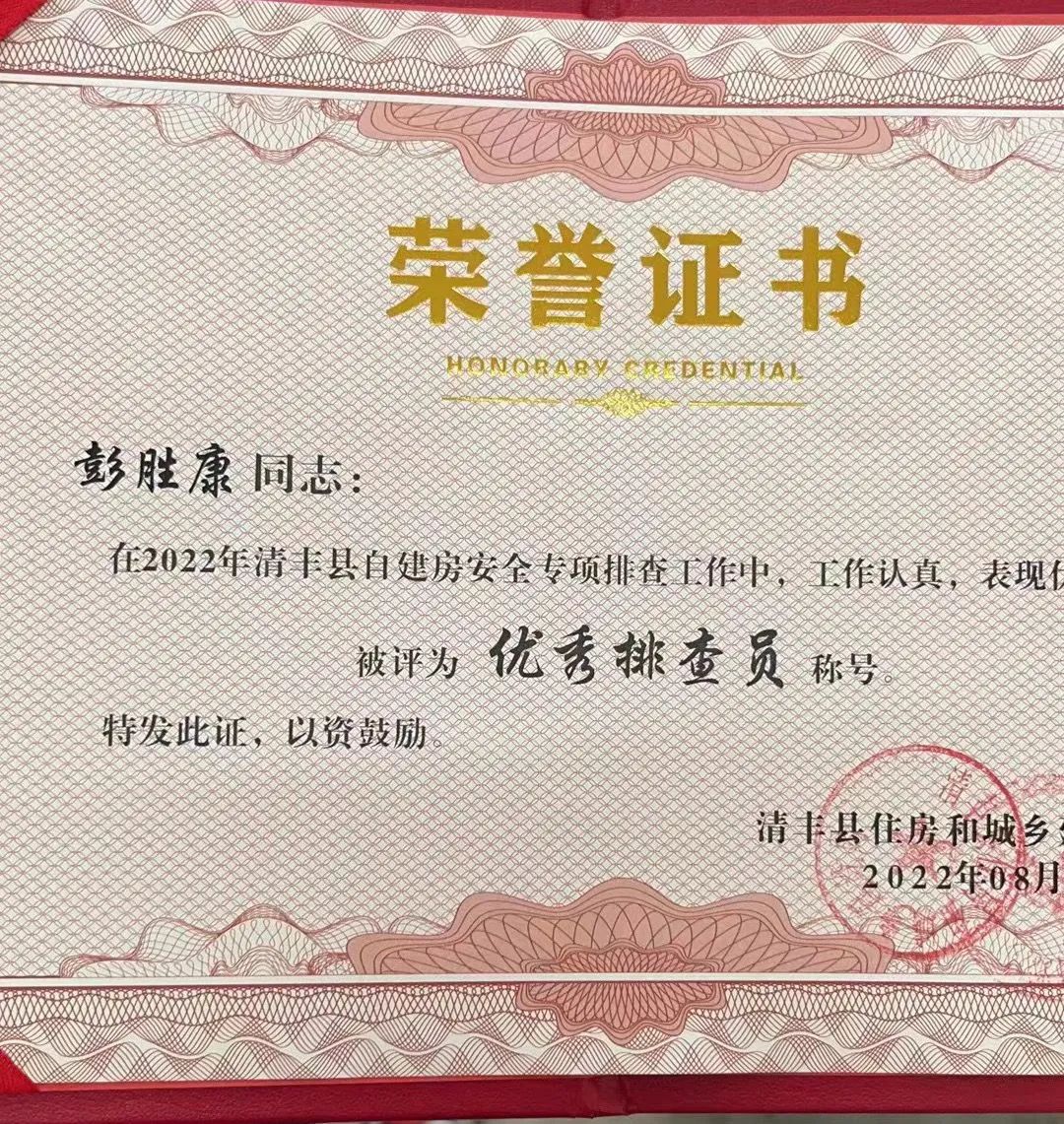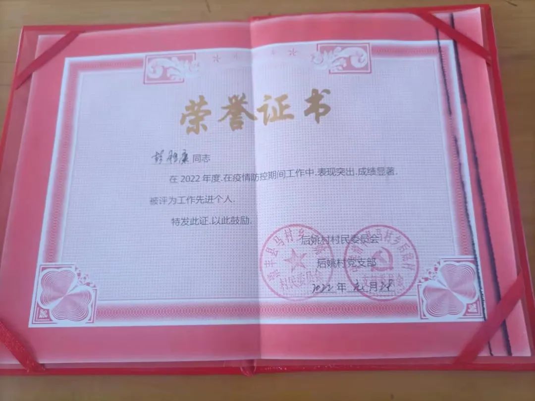 疫情肆虐时期,他积极返家乡参加当地的志愿服务,寒暑假累计工作68天,该同学负责当地居民的疫情卡点,走访调研工作,获得了当地政府颁发的“优秀先进个人”,在参加2022年返家乡的自建房专项排查工作中,荣获清丰县“优秀排查员”荣誉称号。