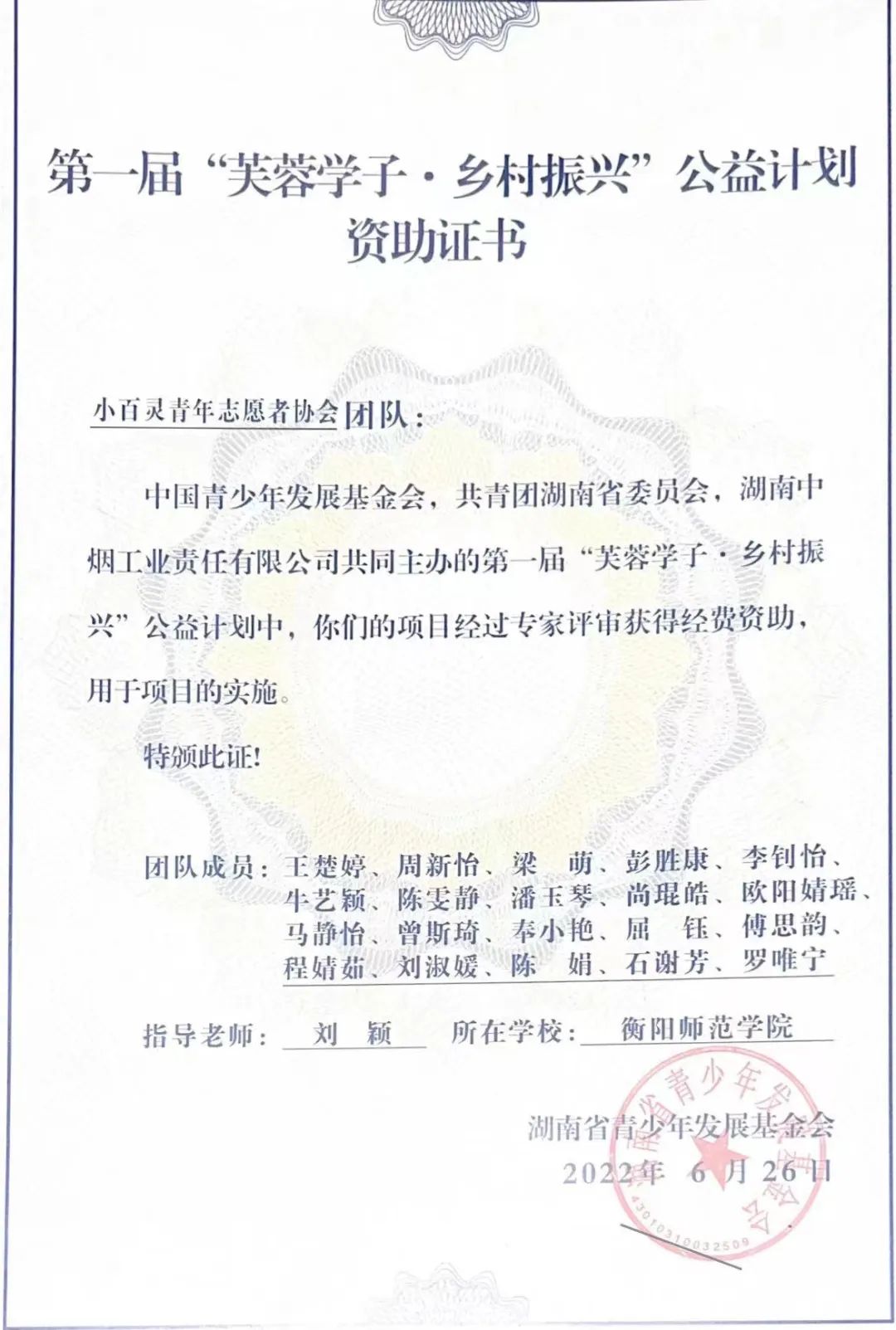 2.第一届“芙蓉学子”乡村振兴计划立项资助