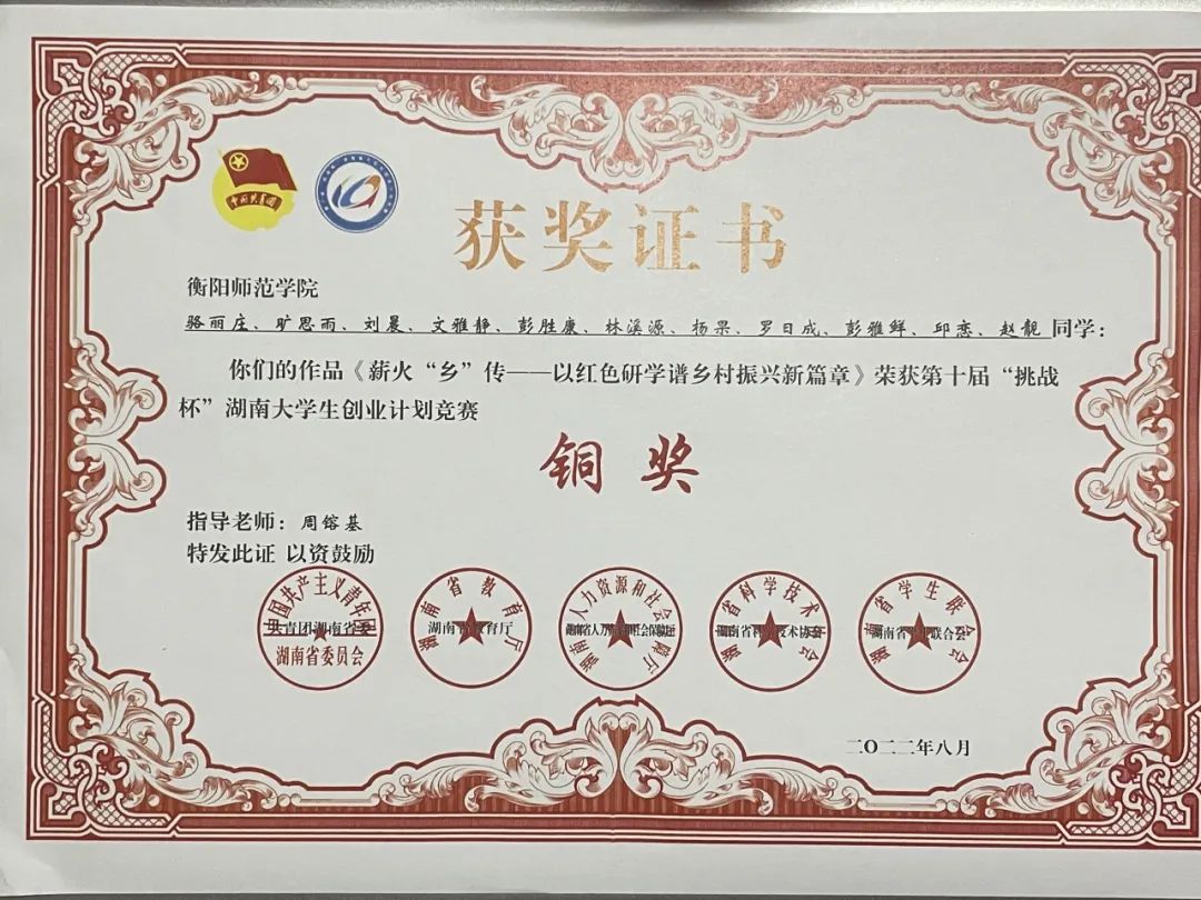 3.湖南省第十届挑战杯创业计划“铜奖”