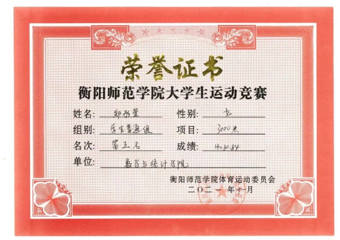 6.2022年荣获校运会女子三千米第六名