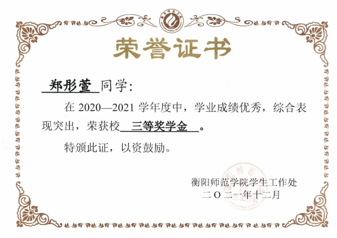 3.2020-2021年度荣获校三等奖学金