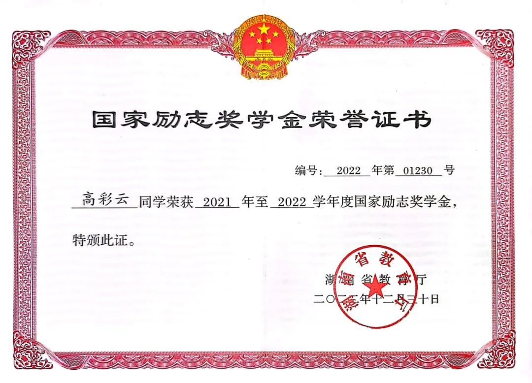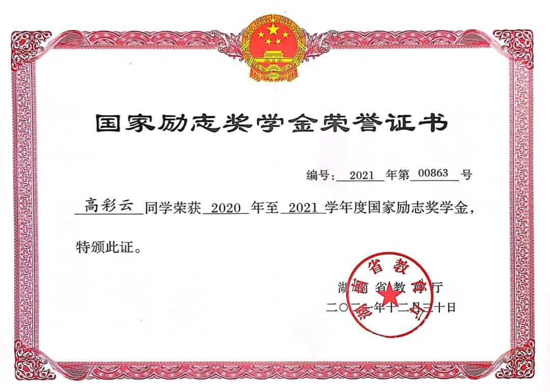 同时,在高彩云身边亦有闪着太阳光芒的人。在学校里,老师对其关怀备至,国家的扶贫政策也给予了这个家庭许多扶持:2014年在政府的帮扶下被列为建档立卡困难户、2018年村干部帮她申报了“雨露计划”。一次偶然的契机,初二她受到了一位长沙爱心人士的资助,他承诺会一直资助到她学业完成……这些温暖是供她成长的养分,亦是一颗种子,深深埋进她的心底。
