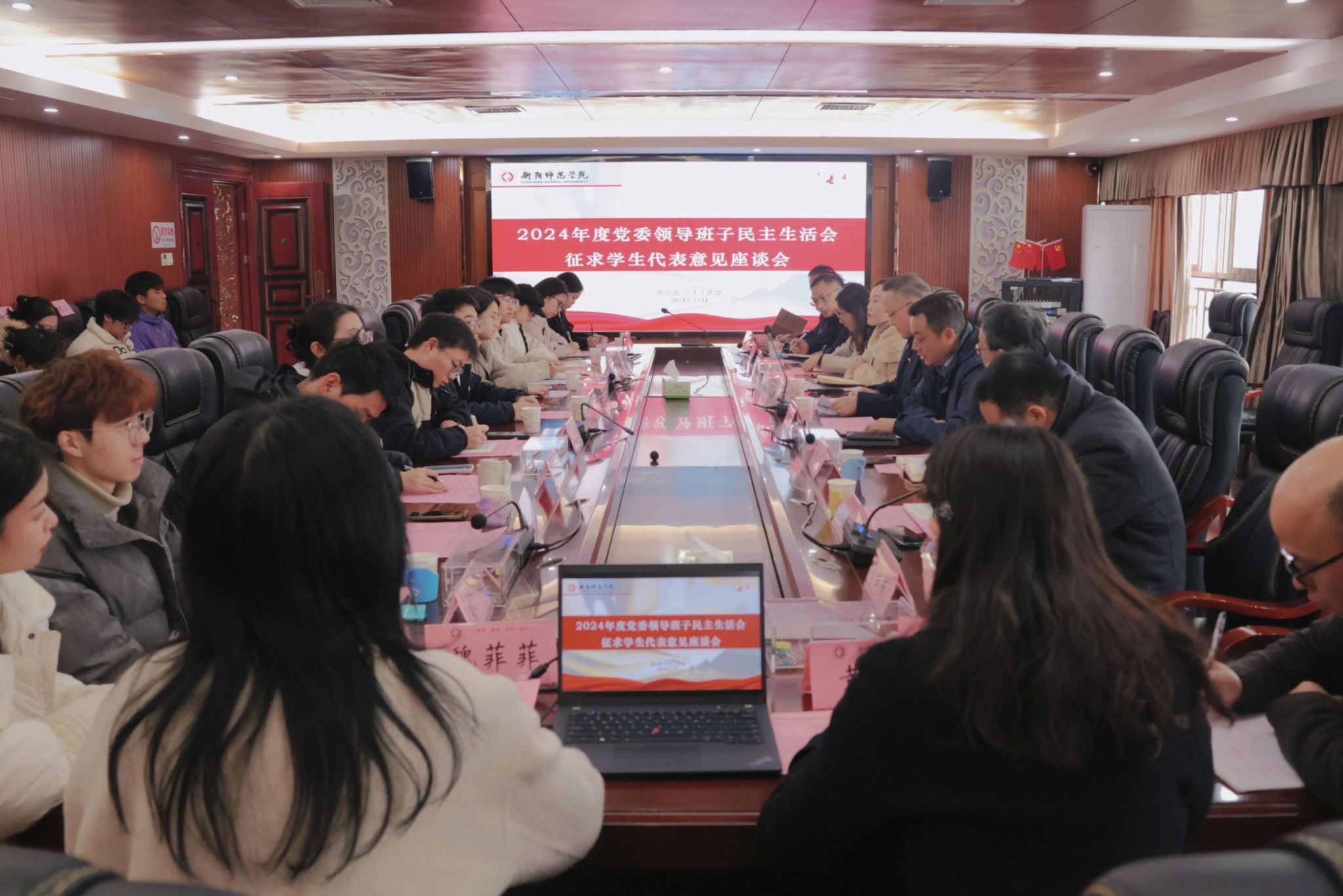 2024年12月30日下午三点,402永利集团于东校区行政楼三楼会议室召开了2024年度党委领导班子民主生活会征求学生代表意见座谈会。校党委副书记、校长刘子兰,校党委委员、副校长魏晓林,校党委委员、组织部部长唐艳,相关职能部门负责人及2024年在籍本科学生代表和硕士研究生代表参加,会议由魏晓林主持。