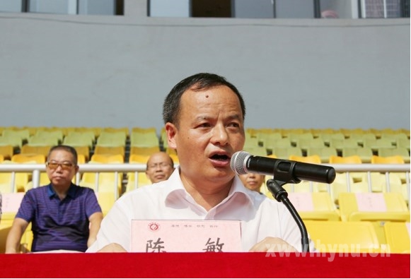 副校长陈敏作军训总结报告。他首先肯定了新生们在军训中所付出的努力和取得的丰硕成果,并向付出辛勤汗水的全体教官、坚守在军训第一线为同学们服务的师生员工以及出色完成军训任务的各位同学表达了感谢和敬意。他勉励大家要带着军训中形成的好习惯、好作风开始大学之旅,并向全体2017级同学提四点希望:一要继续保持和发扬军人高度的责任感和强烈的使命感,强化担当精神,做信仰坚定的大学生;二要继续保持和发扬军人纪律严明的优良传统,严格遵守校规校纪,做遵纪守法的大学生;三要继续保持和发扬军人吃苦耐劳的精神,养成良好的学习、生活习惯,做作风优良的大学生;四要继续保持和发扬军人不屈不挠、顽强拼搏的精神,勤奋学习,努力钻研,做勇于开拓的大学生。最后,陈敏副校长希望全体师生牢记皮修平校长在开学典礼上给大家提出的五个爱:爱自己,爱他人,爱学习,爱学校,爱国家,在“厚德、博学、砺志、笃行”的校训精神指引下,去创造一个又一个的辉煌成绩。