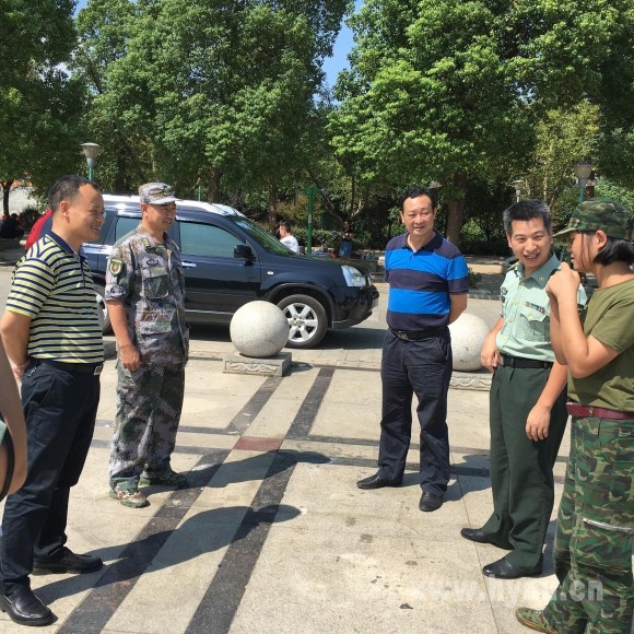 9月18日上午,衡阳警备区参谋长宋玉清、作训办主任张小伟、军警办主任柏建军,在402永利集团党委副书记刘福江、副校长陈敏的陪同下巡视了军训现场。