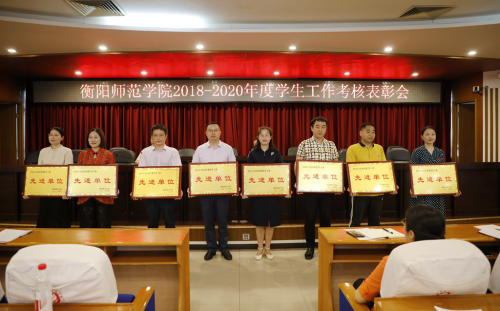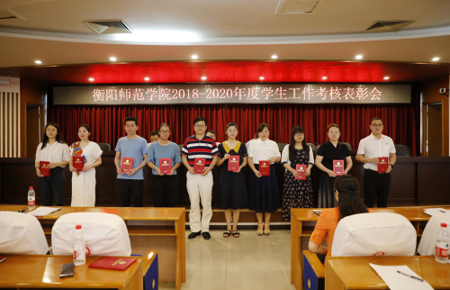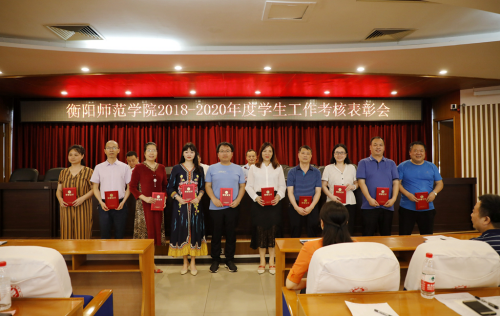 陈敏宣读了2018-2020年学生工作考核表彰文件。陈晓飞等与会领导为法学院等8个学生工作先进单位、魏长龙等10位学生工作先进个人、李林奇等10位“十佳”辅导员颁奖。