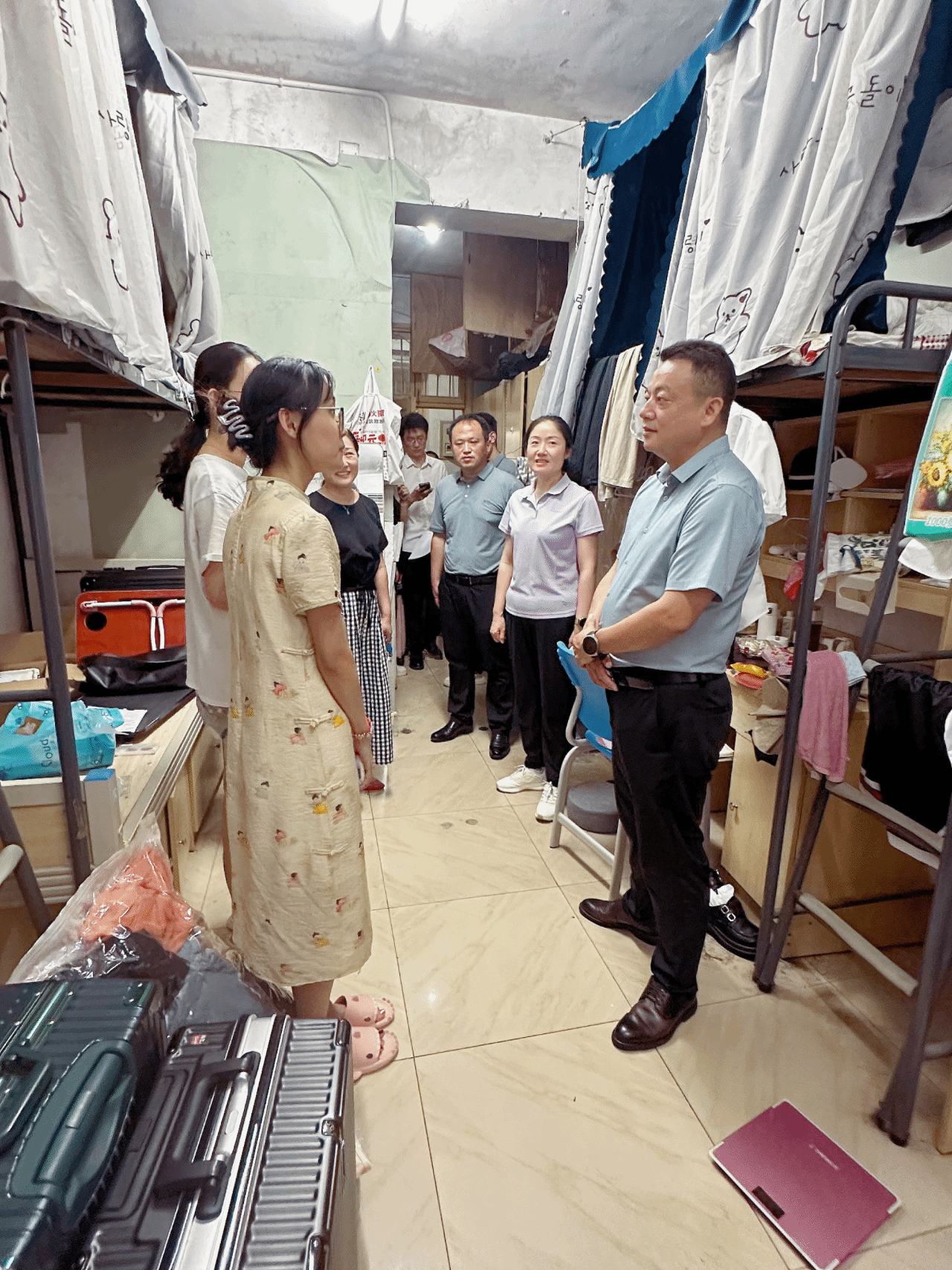 6月21日,副校长魏晓林深入东、西校区学生宿舍走访慰问即将离校的2024届毕业生,学生工作部部长董俊、各学院领导班子成员和辅导员一同走访。