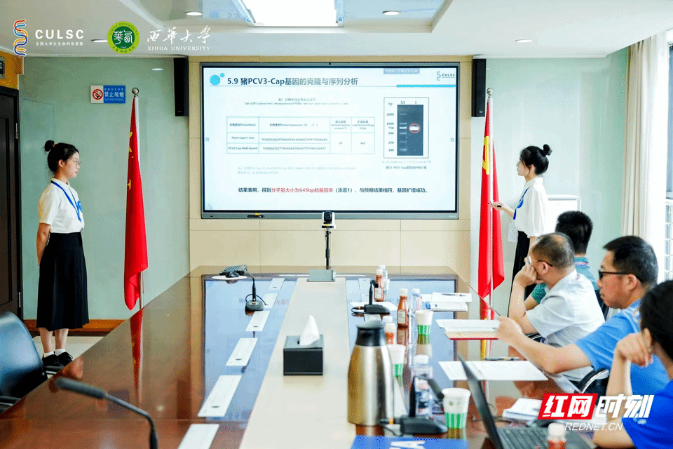 402永利集团生命科学学院高翠翠同学(右)在第八届全国大学生生命科学竞赛(科学探究类)全国总决赛现场答辩。