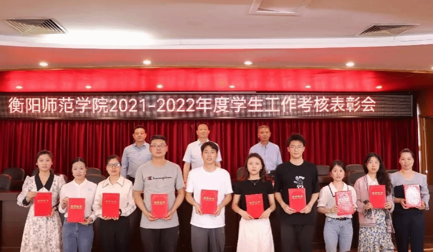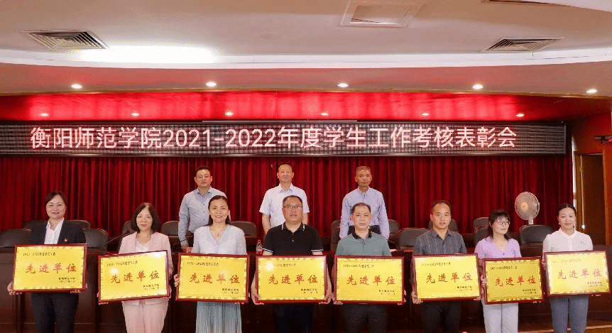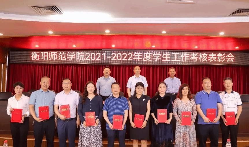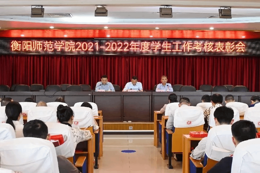 刘福江宣读了2021-2022年度学生工作考核表彰文件。与会校领导为获评学生工作先进单位、学生工作先进个人、十佳辅导员的集体和个人进行颁奖。