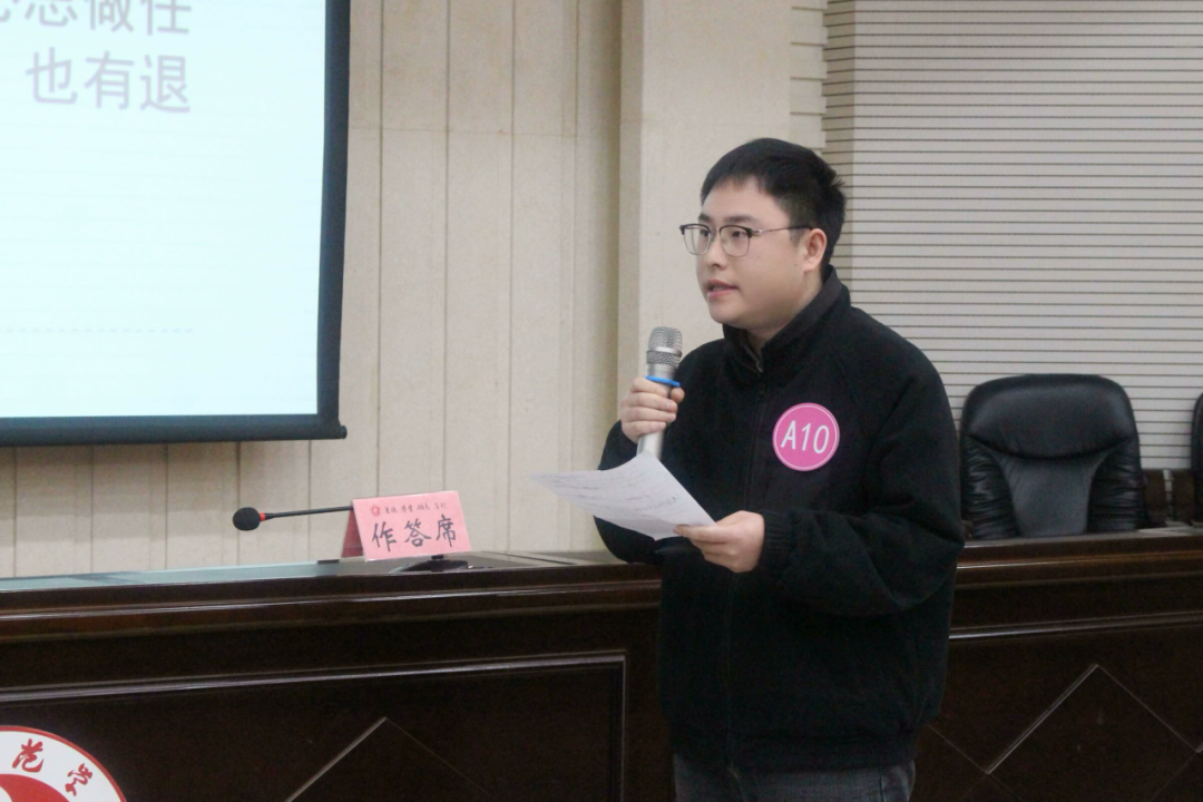 案例研讨环节题目涵盖辅导员九大工作职责,聚焦大学生思想政治教育热点与难点问题。选手两人一组,围绕抽取的案例,共同辨析问题,探讨对策,总结规律,在“你来我往,一问一答”中,由表及里、步步深入,充分彰显出辅导员运用理论分析、研判、解决问题的综合能力出色的逻辑思维能力。