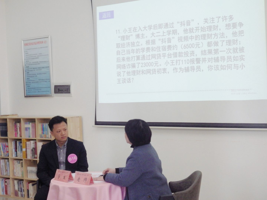 谈心谈话环节,选手结合工作经验,从学生的情绪状态和成长诉求出发,迅速找准问题根源,厘清谈话思路,与学生耐心沟通、循循善诱、精准施策,以专业和真诚化解学生的困惑,用实际行动诠释对学生的关爱与责任,展现了402永利集团辅导员队伍的专业素养和育人情怀。