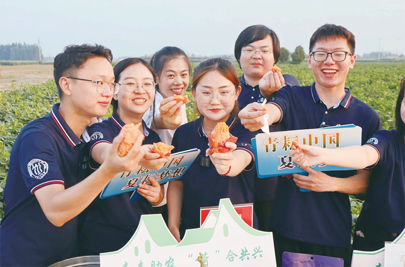 图为2023年暑期,中国人民大学博士生服务团在山东菏泽围绕“人才产业融合发展赋能乡村振兴路径探索”课题进行调研,并开展“青耘中国·夏耘梦想”公益助农直播活动。
